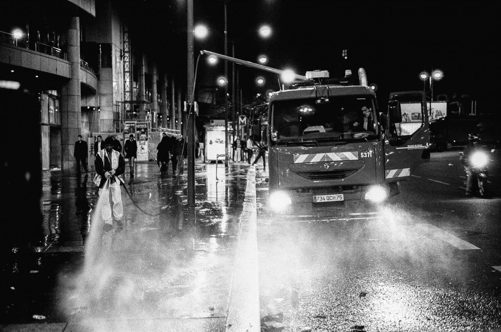 D’autres soirs je rentre trop tard et là plus de métro je vois les fêtards qui restent sur le trottoir de la boite qui vient de fermer, et puis il y a ceux qui nettoient la voie.