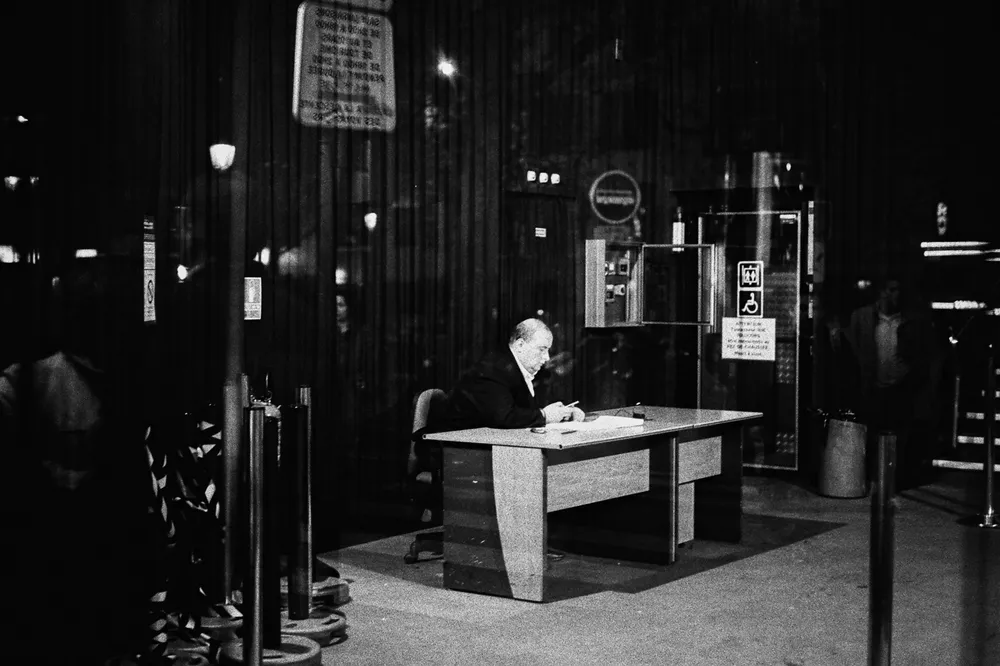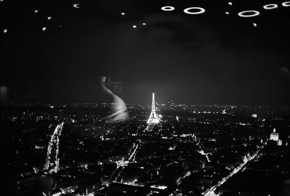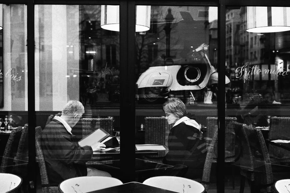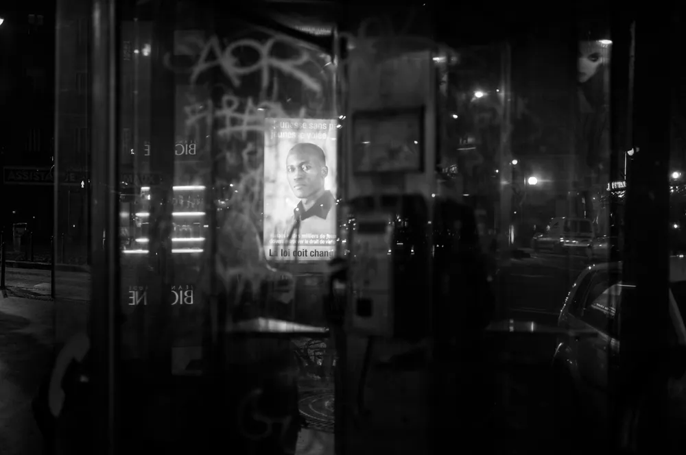 La nuit ce n’est plus les reflets de la rue que nous offrent les boutiques, mais leurs intérieurs. On trouve le sosie d’Hitchcock qui tient des registres a la sortie du moulins rouge et une pizzeria de Strasbourg Saint-Denis où est vraiment posé une Vespa sur son comptoir.