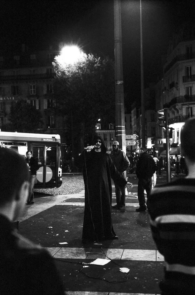 Un autre soir au même endroit un homme vêtu de noir parle dans un micro encore un illuminé ? Non, un chanteur qui fait la satire des religions.