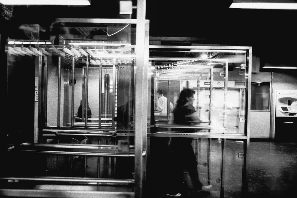 Impossible de prendre les gens il y a trop de monde, alors je cadre à travers la vitre.