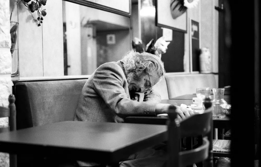 Comme lui, personne ne viendrait prendre sa place, chaque soirs il s’assoit au même endroit. Après ou pendant son désert: il pique du nez. Le patron finit toujours par le réveiller. Il n’a pas de toit mais paye toujours ses repas. Ce doit être un privilège de vouloir échapper à la routine, pour lui ce qui compte c’est de pouvoir dîner chaque soir à la même table.